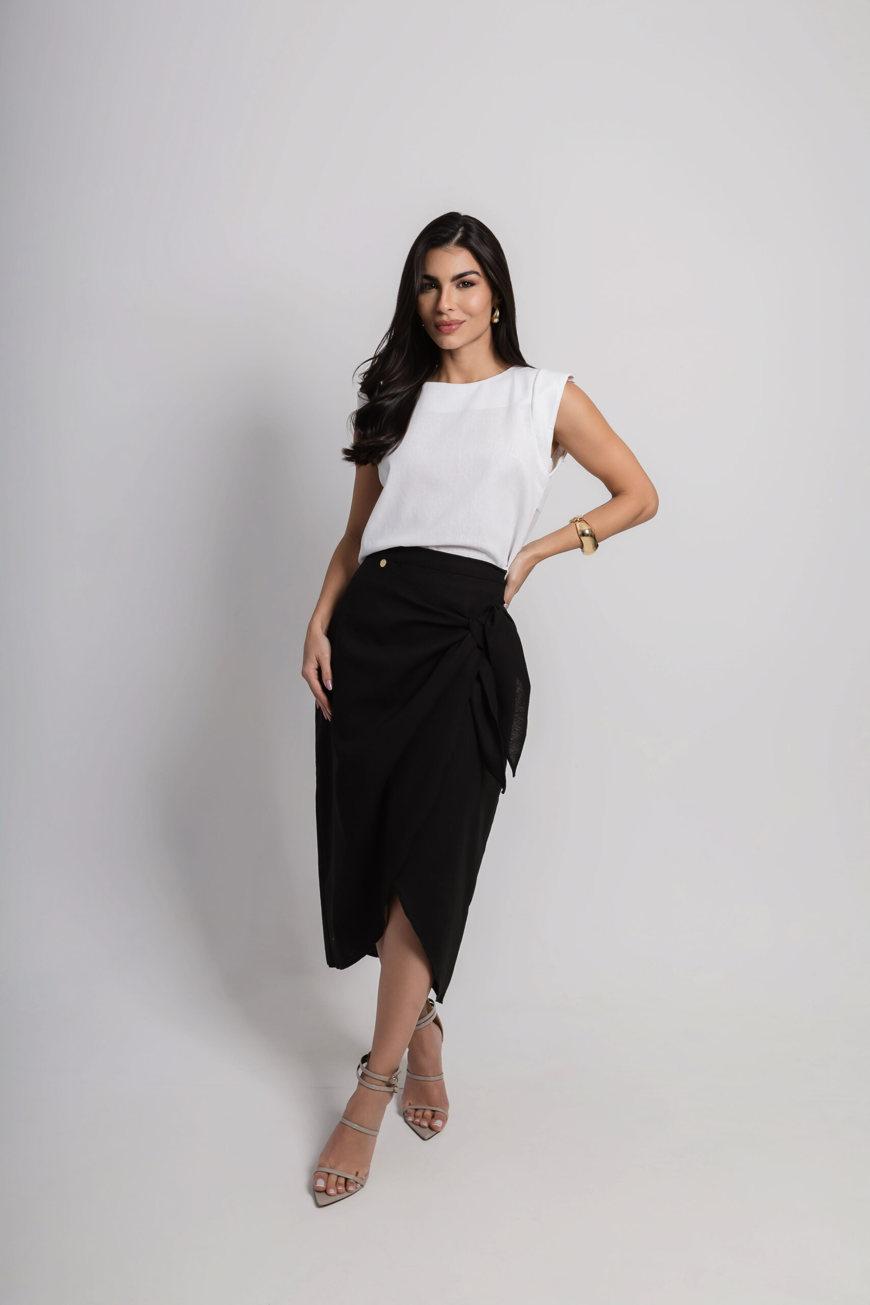 Elegância com toque natural. Confeccionada em linho de alta qualidade, a saia mídi traz leveza e sofisticação em um design atemporal. Possui amarração lateral que valoriza a cintura, além de fecho discreto para um ajuste perfeito. Versátil e charmosa, é ideal para compor produções que vão do casual ao elegante com muito estilo.